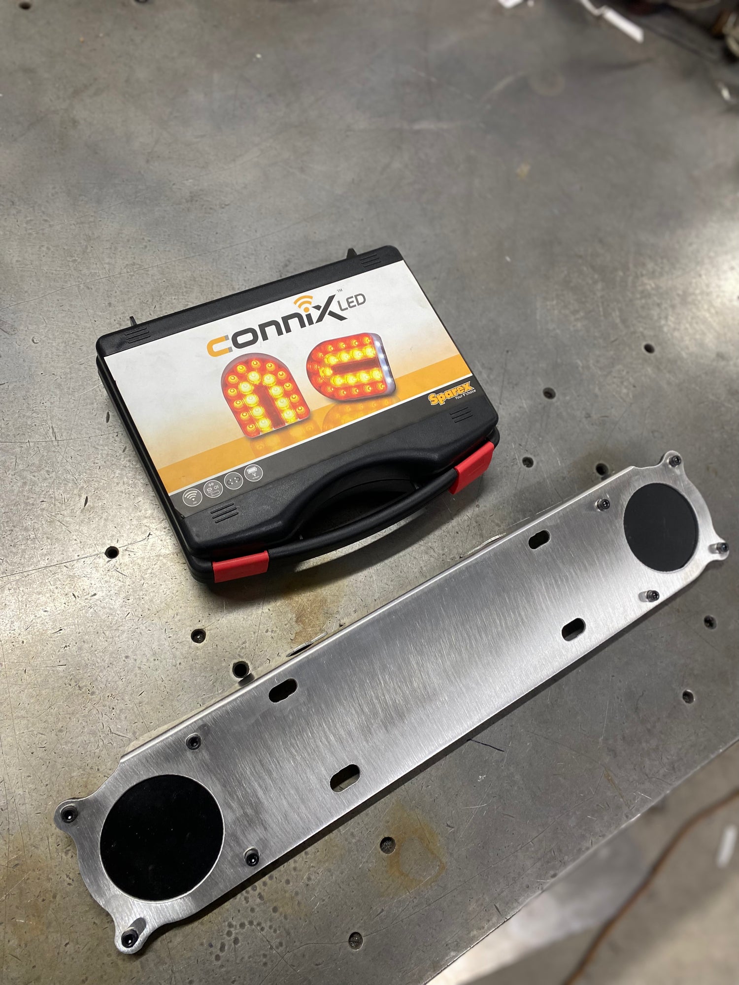 Made from cnc cut folded sheet aluminium with steel inserts bolted to it to accept the magnet attached wireless tail light assemblies.